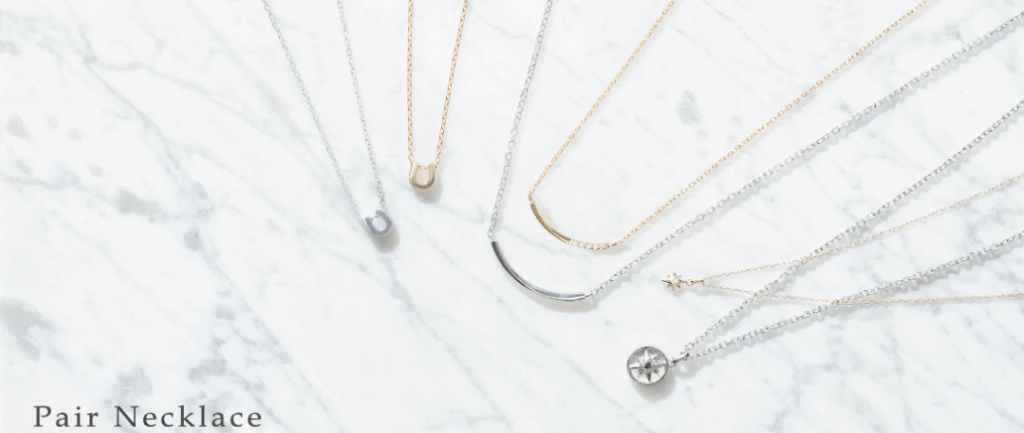 ペアアクセサリーはリング、ネックレス、ブレスレット、バングル、イヤーカフなど豊富な品揃え。