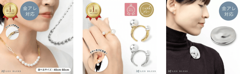一部の商品は金属アレルギーに対応。