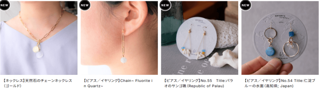 天然石アクセサリーを中心に、シンプルでも人と被らないデザインが多く、上品な仕上がりです。
