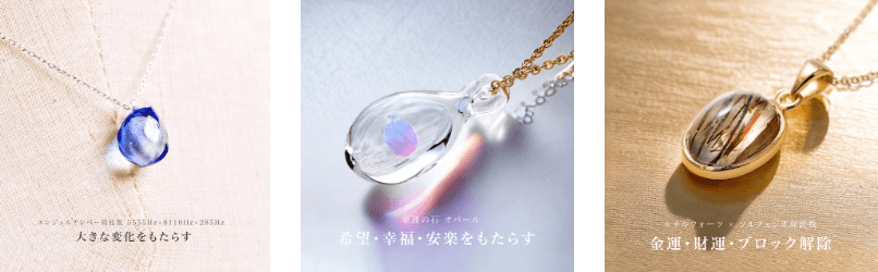 Happyencounterでは、異なる効果のソルフェジオ周波数から好きな周波数を複数選び、カスタマイズすることで、世界にひとつだけの特別なアクセサリーが作れます。