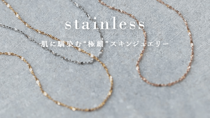 金属アレルギー対応の316サージカルステンレスを中心に、シルバー925素材も取り扱い。