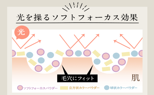 薄づきで厚塗り感がないのに密着カバーを実現しており、毛穴の凹凸や小ジワ、シミなどの肌悩みをきちんとカバーし、素肌感をいかした仕上がりです。