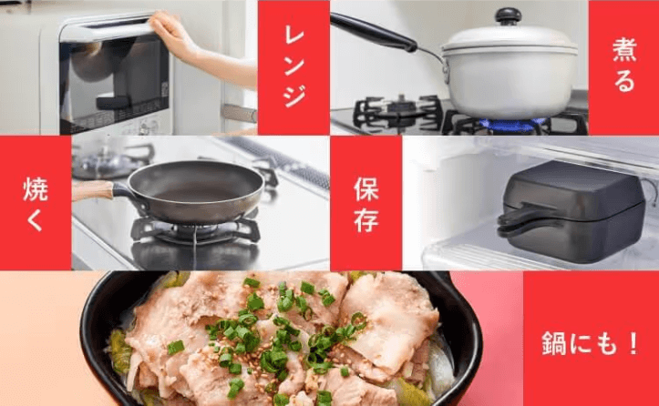 は焼く・煮る・電子レンジ・保存容器として使える万能調理アイテムです。