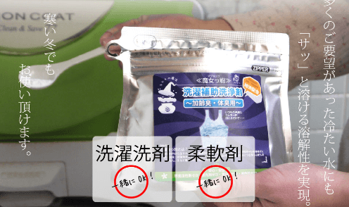 泡立ちや香りがないため洗剤や柔軟剤と一緒に使ってもOK。