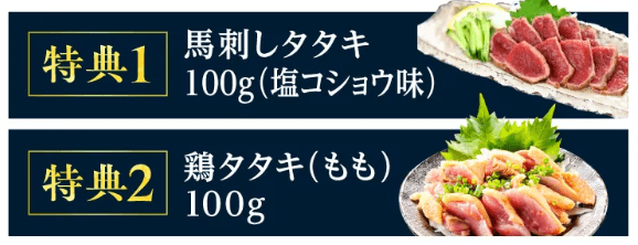 特典:馬刺しタタキ+鶏タタキ(もも)