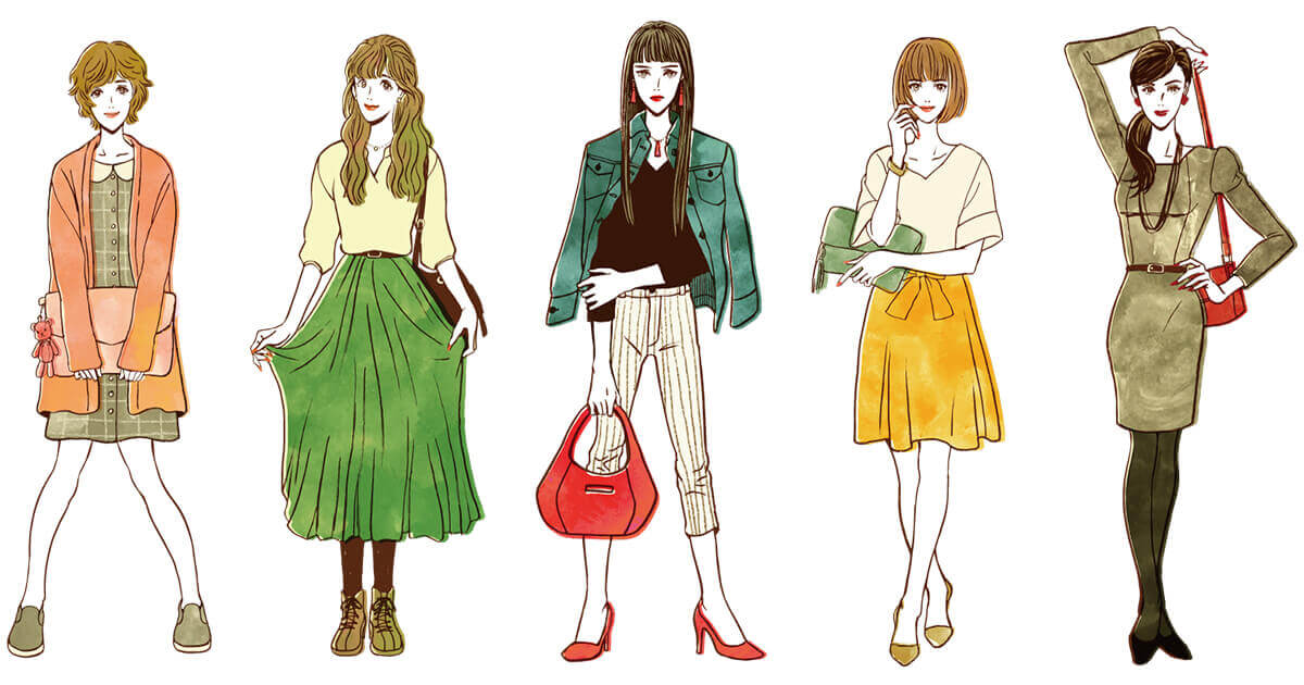 アクセサリーやチェーンバッグ、カラー小物などを合わせて自分らしいコーデが演出できます。