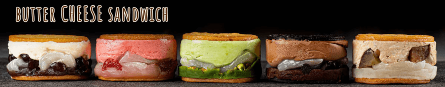 シンプルでリッチなチョコレートサンドには、ほろ苦いコーヒー、人気のピスタチオ、爽やかなストロベリーなどフレーバーもいろいろ。