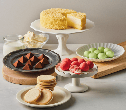 焼菓子からチョコ系スイーツ、ティータイムが華やぐケーキやタルト、上品な味わいの和菓子まで、家事や仕事の合間にほっとひと息。