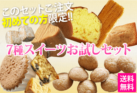 初めての方限定の、お店の人気スイーツを詰め合わせした7種スイーツお試しセットが好評。